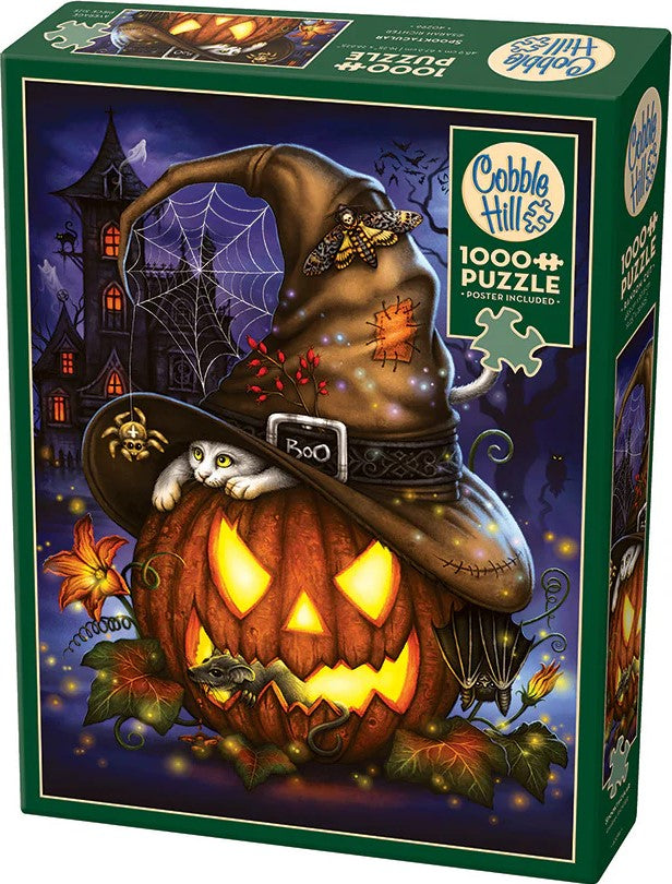 Get ready for a spine-tingling adventure with this 1000-piece puzzle by Sarah Richter! Step into a world where Halloween magic reigns supreme. As you approach the eerie castle for a sweet treat, you're greeted by a large Jack O Lantern glowing ominously. Perched atop its witch's hat is a Boo buckle, daring you to proceed. But beware! The path is guarded by spooky ghosts drifting in the mist, and a mischievous black cat watches from the mansion's roof.