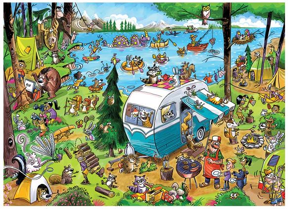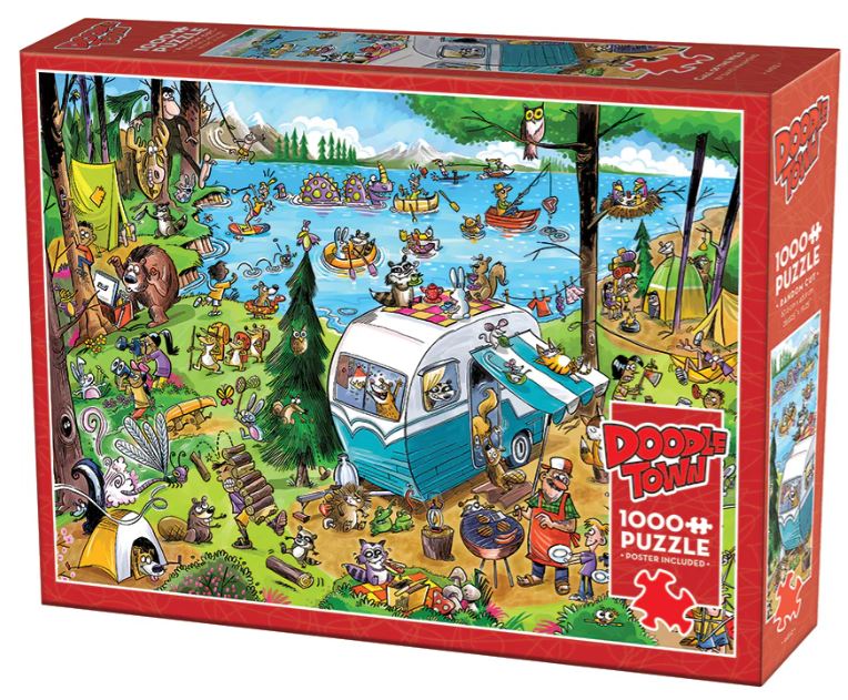 DoodleTown: Call of the Wild is a hilarious 1000 piece puzzle by award winning cartoonist, Dave Whamond. Country critters go wild as the campers do their best to mingle with the wildlife.. and they are wild indeed!