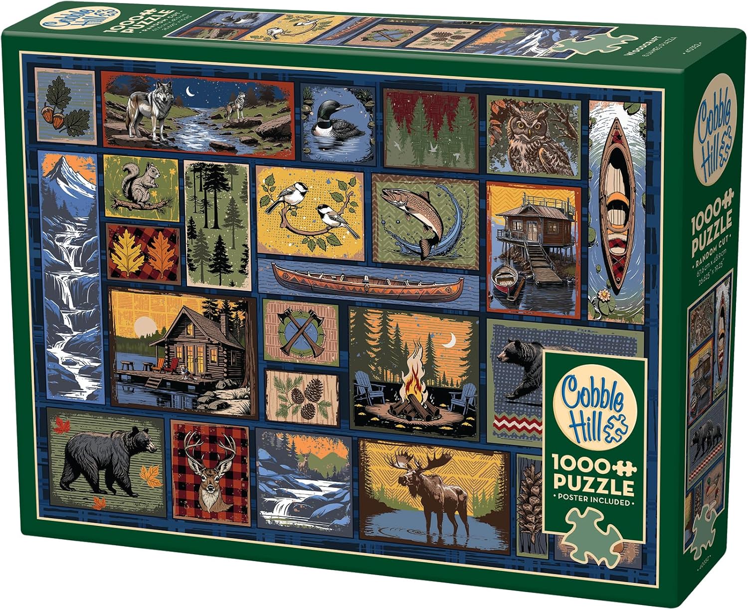 Bring the great outdoors to your table with Woodcraft, a picture-perfect 1000 piece puzzle by artist James Piazza. This rustic collage celebrates all things nature from cozy cabins by the lake to rushing waterfalls, mighty moose, and curious bears. Every badge tells a story of adventure, wildlife, and wanderlust. You can almost smell the crisp forest air as you piece together this nostalgic scene. Crafted with premium linen print paper and random-cut pieces, each puzzle offers a beautiful finish and a satisfying fit for nature lovers everywhere.