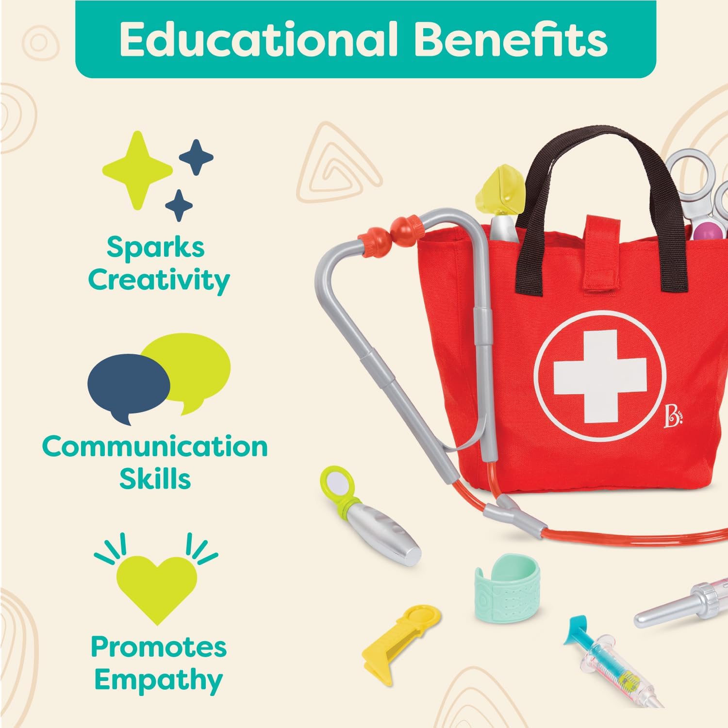 Easily Portable: All of the tools neatly fit into the fabric bag, so kids can treat make-believe patients wherever they go!