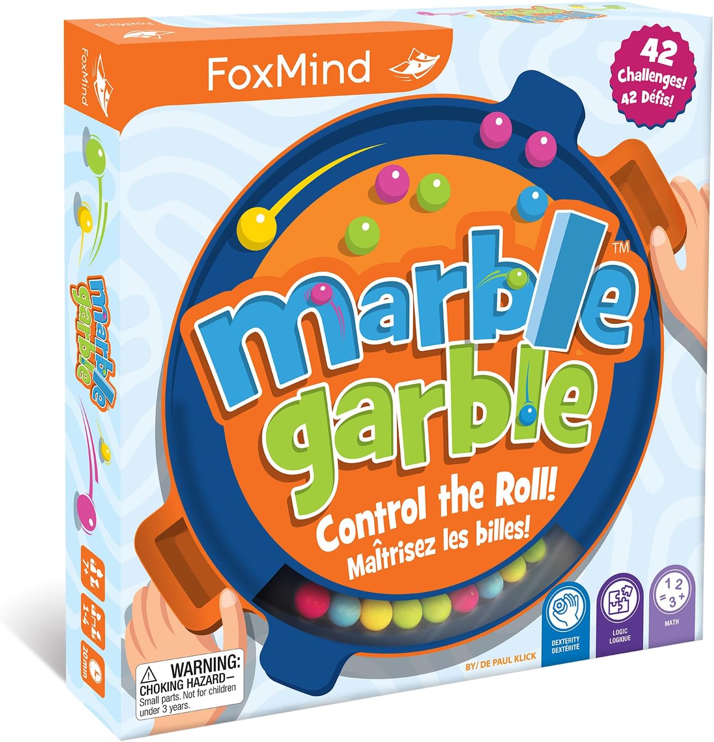 Marble Garble Game: Control the roll of our colorful marbles as you magically lift them on to the Marble Garble game for kids playing board; make use of your dexterity, focus, and wit to complete the challenge on our game cards