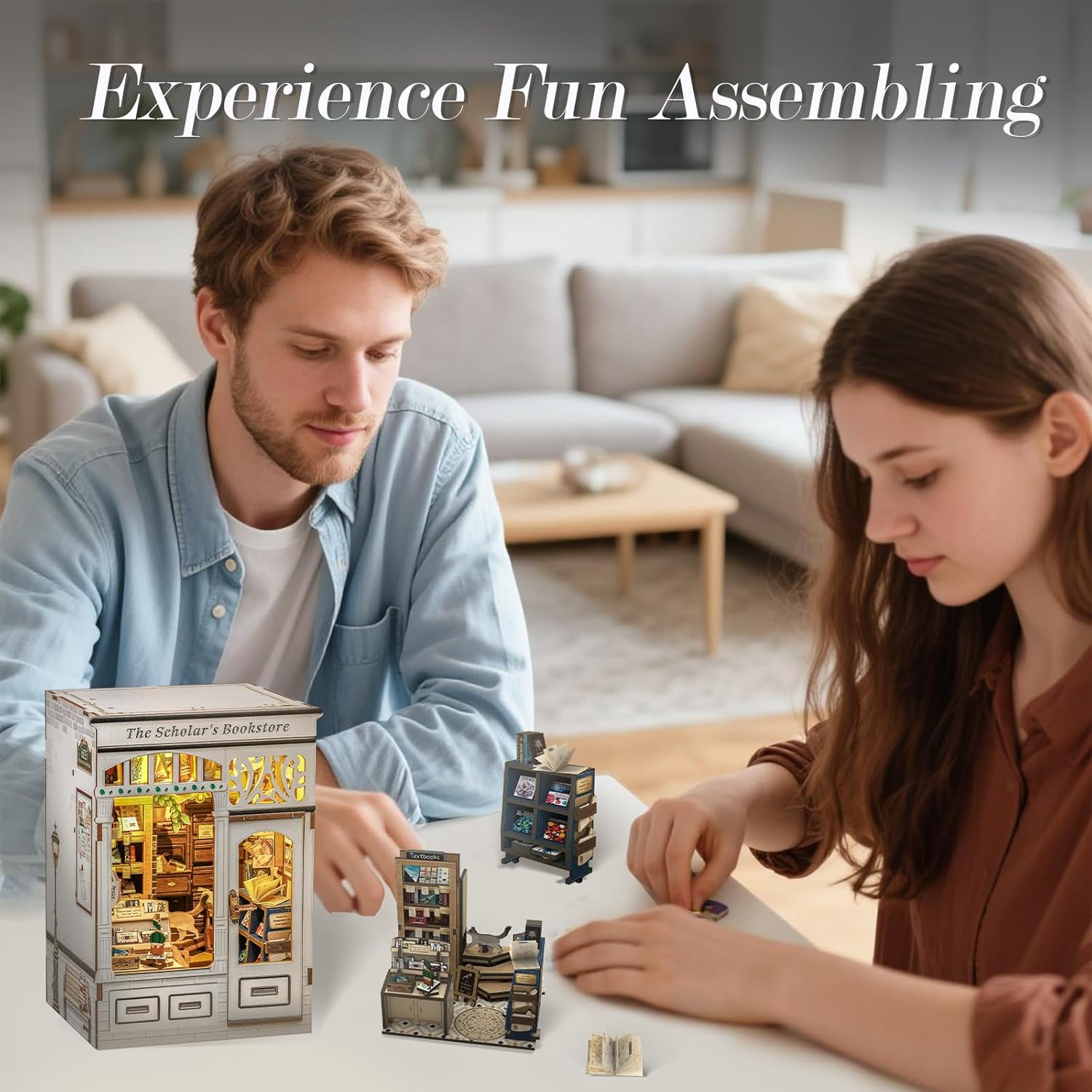 From the intricate woodwork of the storefront to the tiny posters, plants, and meticulously arranged reading materials inside, every piece invites you to slow down, take your time, and craft a scene that feels like a sanctuary for the soul. Whether you place it on your bookshelf or gift it to a fellow book lover, this book nook transforms any space into a story waiting to be told.