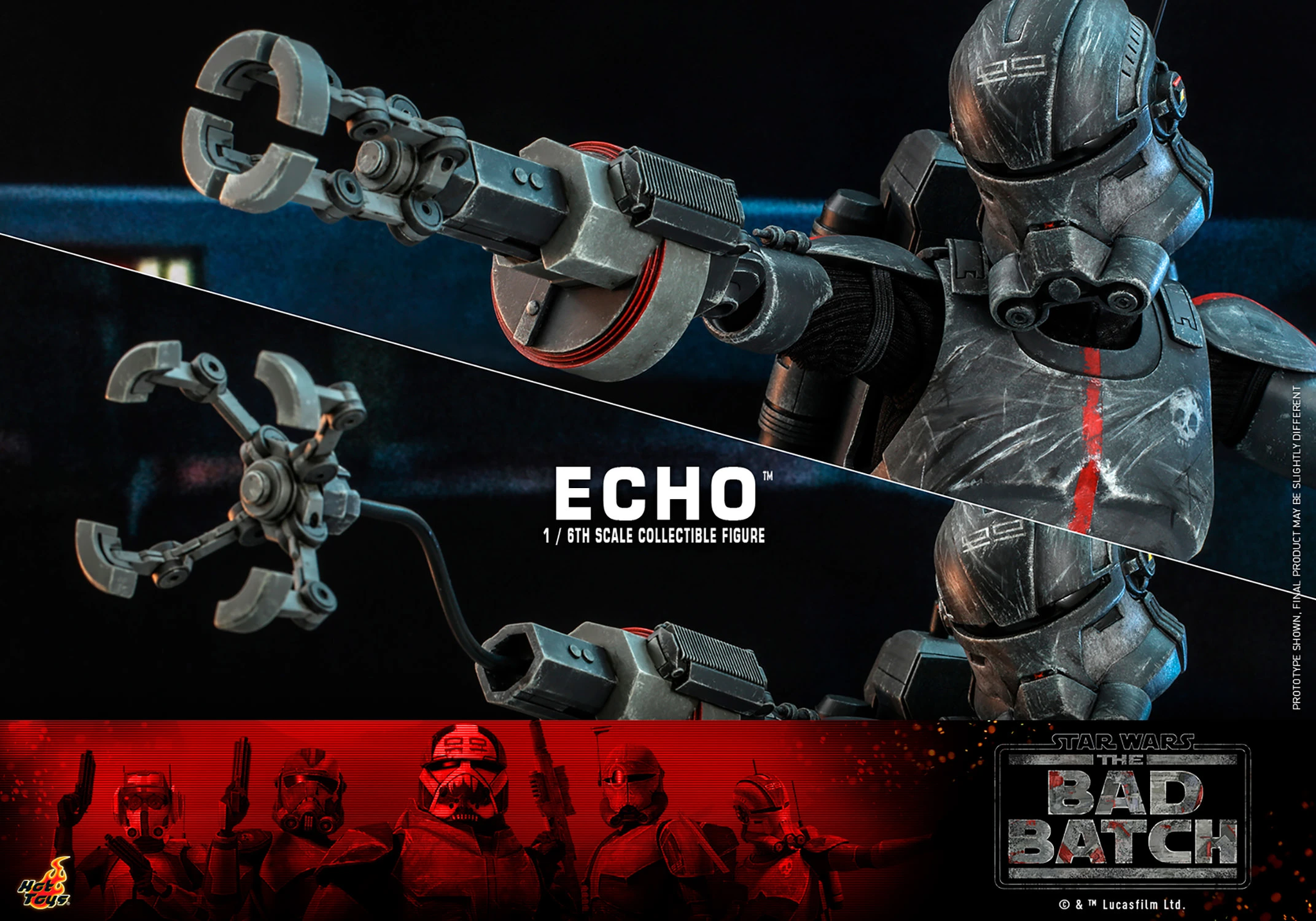 The highly accurate collectible figure features skillfully crafted and finely detailed recreation of Echo’s armor and helmet, interchangeable head sculpt with great likeness, the character’s unique cybernetic parts including a variety of interchangeable mechanical right arms, a military backpack, blaster, and a display base!