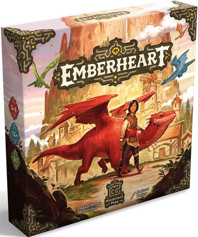 Emberheart is a quick-playing, medium-weight worker placement game for 2-4 players. As one of the King’s Champions, your task is to recruit heroes, rescue dragons and expand their preserves, train your own dragon companion, and oppose the roaming poachers.