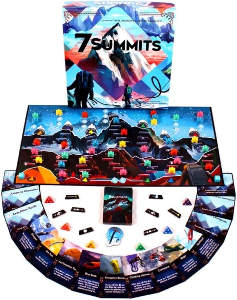 In 7 Summits, you are a team of world class mountain climbers. Use the dice to your advantage to climb the tallest mountain on each of the seven continents, upgrade your equipment, and advance your skills. Will you be the first to climb them all?