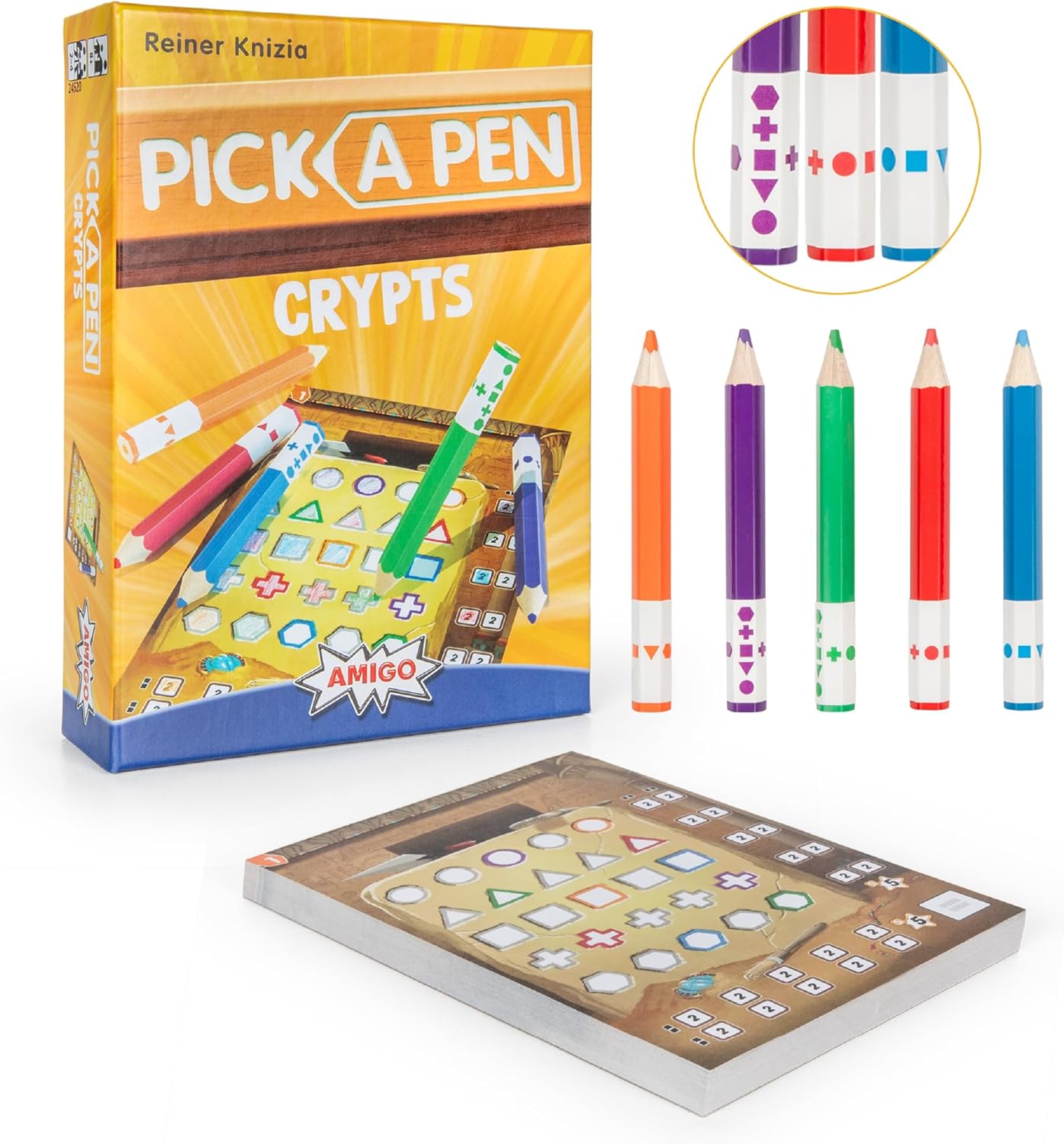 PICK A PEN Crypts Roll pencils, then color in the number of spaces on the pencil you choose. Each game offers different ways to score points. From famed game designer Reiner Knizia!