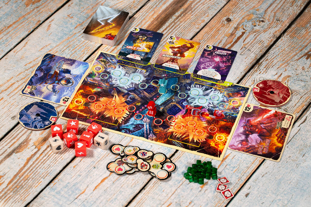 As night falls on Tokyo, two massive silhouettes rise from the smoke snaking up from destroyed skyscrapers. There can be only one who will be crowned King of Tokyo, either by annihilating their rival or by inspiring terror and awe from the crowds.