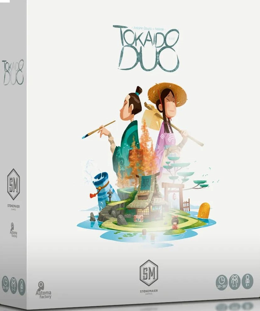 The Stonemaier Games version of Tokaido Duo features character guides for each player and an Automa solo mode.
