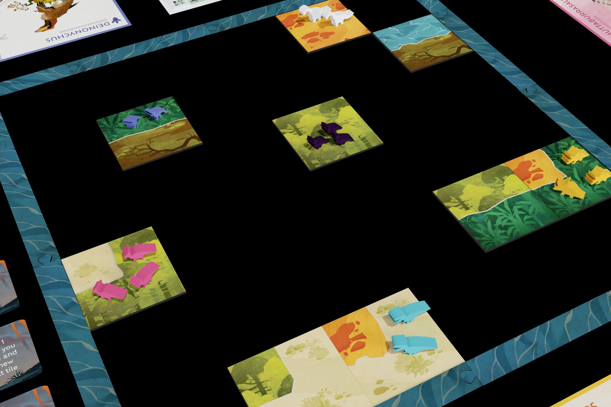 The map, called the territory, is created by the players placing territory tiles. These tiles create biomes can span several tiles. It is not specified where in the world the game takes place, but the biomes are based on the ones that existed during the Cretaceous period. The map is mostly unknown at the start of the game and is gradually revealed as players spread and explore it.