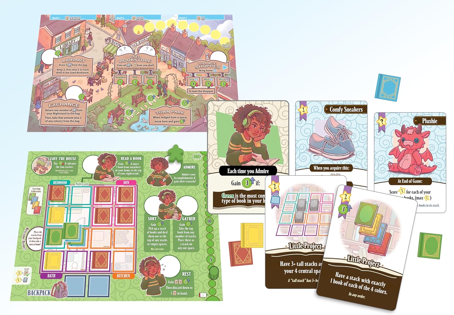 A Place for All My Books is a puzzley book gathering, sorting, and organizing game in which players arrange stacks of books in different rooms of their apartment as personal projects. When done, they can admire their accomplishments and gain their rewards – not least of which is renewed energy, which they can then spend to head out into the village - to pick up more books!