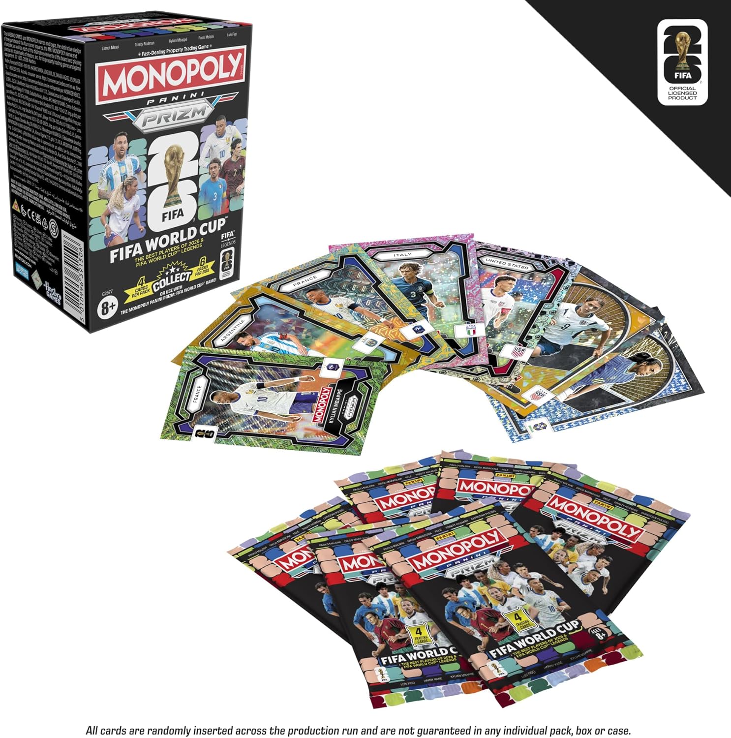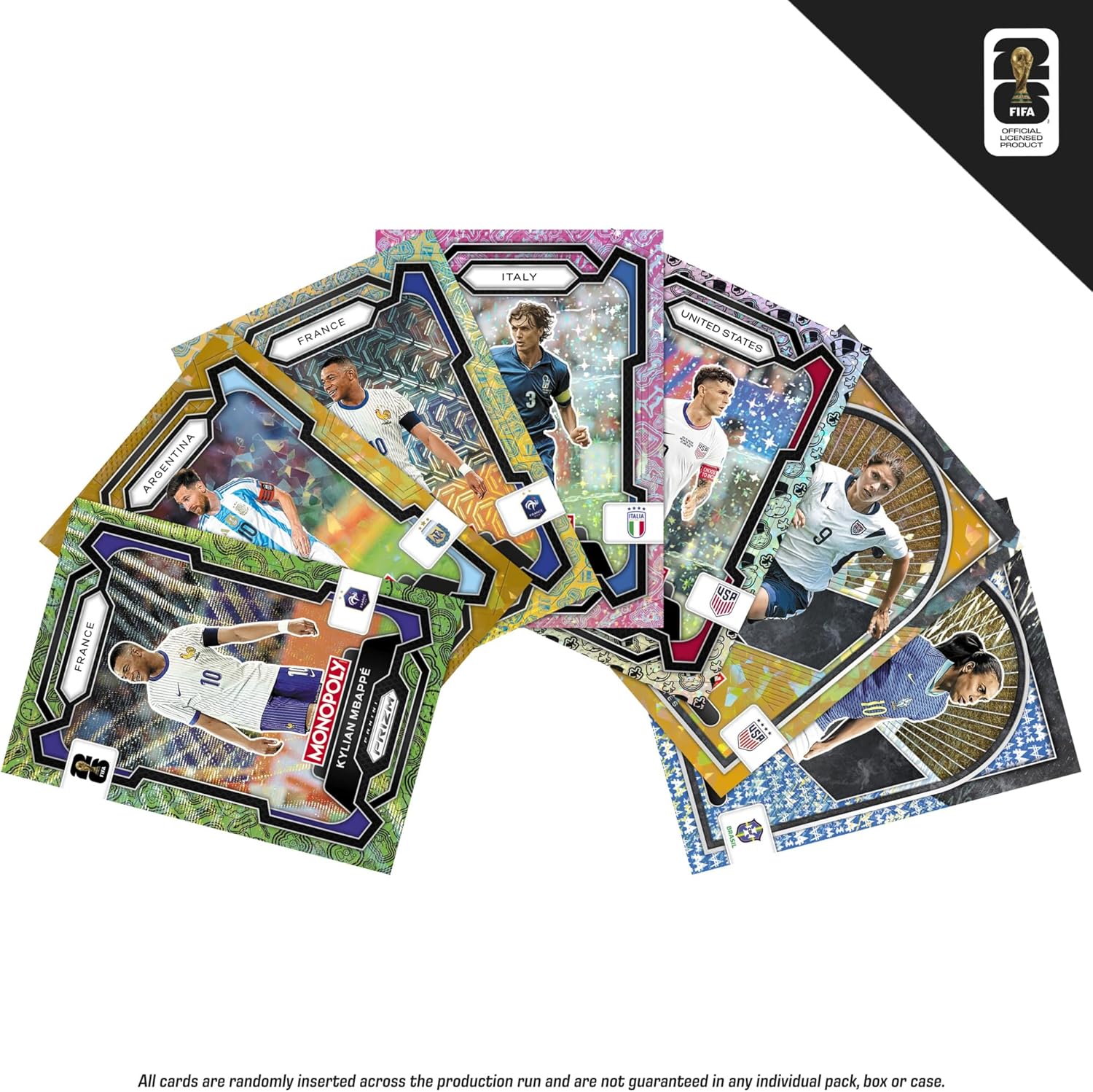 MONOPOLY PANINI PRIZM: FIFA WORLD CUP 2026 & LEGENDS CARDS: This Monopoly Panini Prizm: FIFA World Cup Trading Cards booster box includes 24 FIFA WORLD CUP trading cards, featuring current stars and FIFA World Cup legends