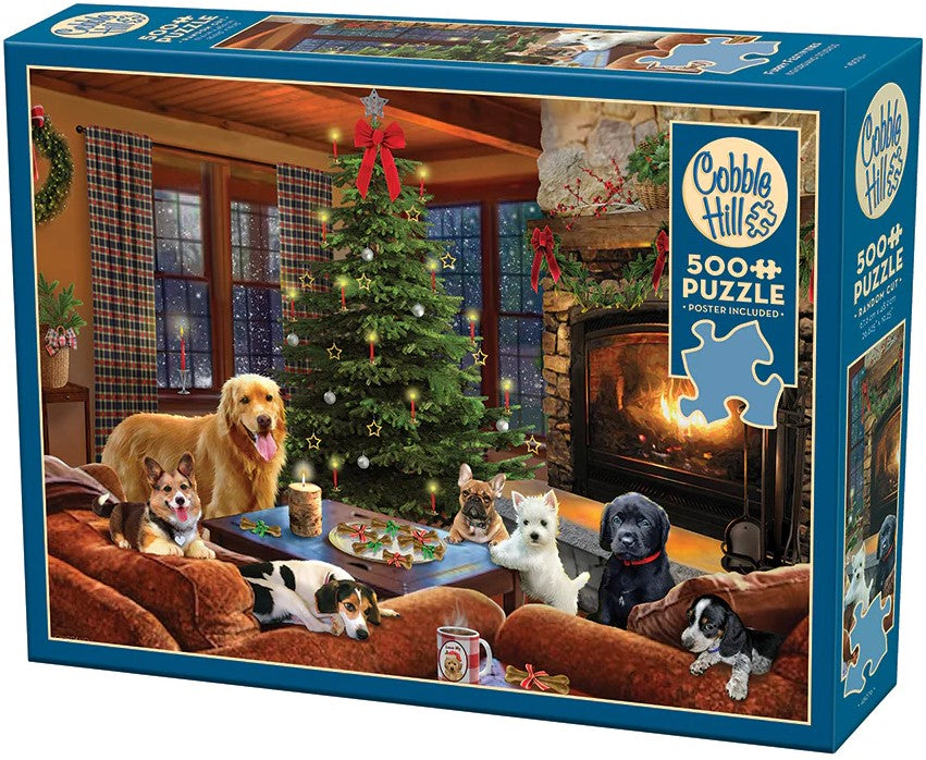 Gather together for some Furry Festivities this season! The Christmas tree is lit up and so is the fireplace. What more does one need to warm their heart? Oh, just a room full of adorable doggies! This Robert Giordano 500 piece puzzle is full of love and Christmas spirit. Enjoy naming all the different dog breeds as those furry faces stare back at you. Will you save the red bow as the last piece?