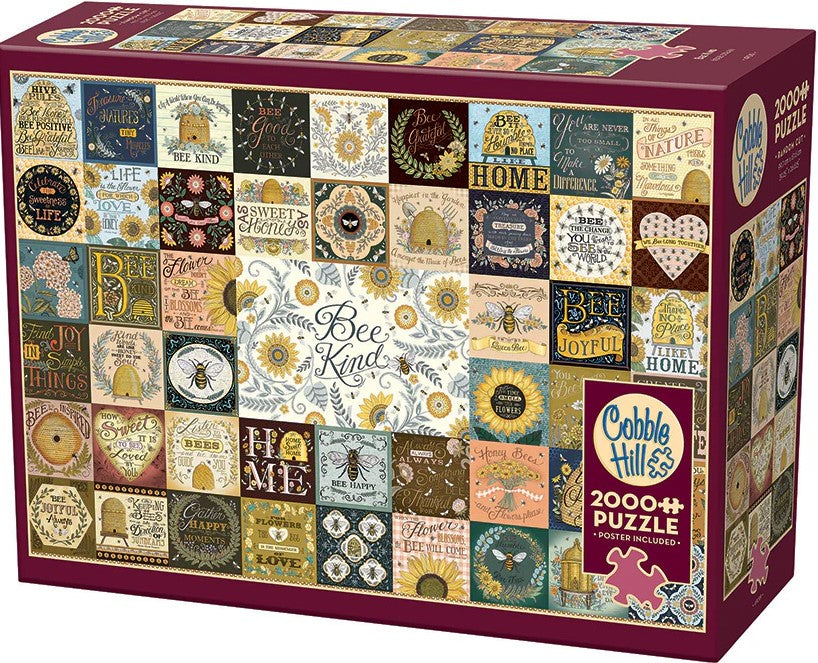 Bee Kind is a delightful collage that honors the busy, humble lives of bees and their dedicated caretakers. Designed with a mix of calendar art and fabric patterns by artist Deb Strain, this 2000-piece puzzle is buzzing with sweet quotes that will surely inspire you as you piece it together.