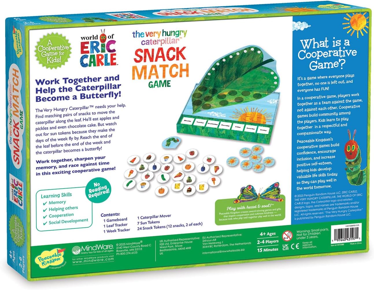 Cooperative memory adventure – work together to help the iconic Very Hungry Caterpillar find matching snacks before the week—and the leaf—run out.