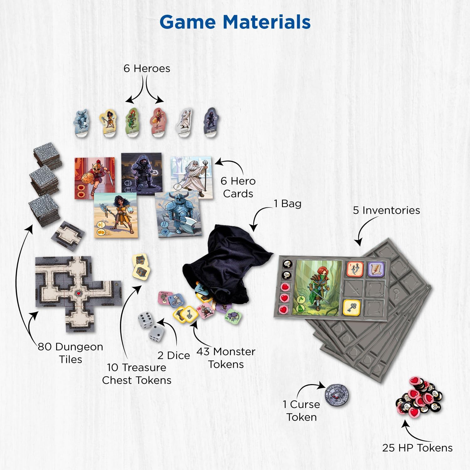 Gameplay: Embark on an engaging dice adventure by choosing one of six heroes—a magician, thief, warrior, warlock, swordsman, or oracle. Each game features a new dungeon maze as tiles are laid out, ensuring a unique experience every time