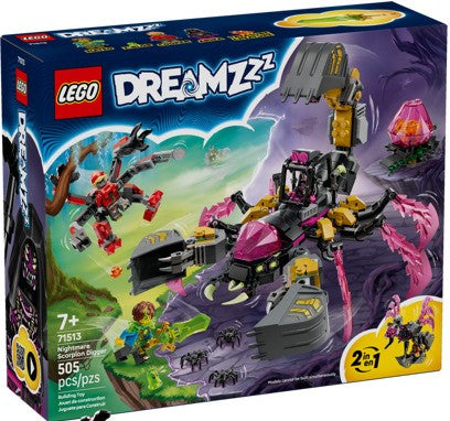 Fuel imaginations with this awesome LEGO® DREAMZzz™ Nightmare Scorpion Digger (71513) building set for boys and girls ages 7 and up. It offers 2 build options, so kids can create a scorpion excavator toy or a biomechanical wasp. The fantasy scorpion toy is a 6-legged terror equipped with clawed pincers, shooters and a crushing excavator, while the biomechanical wasp toy is a sleek winged predator with a venomous excavator stinger and shooters. The set also includes Mateo, Cooper and Arika minifigures to encourage pretend play, and Mateo comes with a collectible green sword accessory. There’s also a Z-Blob figure and 3 spiders, plus a pink diamond egg that’s been corrupted by the Nightmare Emperor and hatches a collectible Orange TreasureCreature toy. An action-packed birthday gift for kids, this building toy includes story-led building instructions that help dreamers immerse themselves in the action. These are also available digitally in the LEGO Builder app. Set contains 505 pieces.