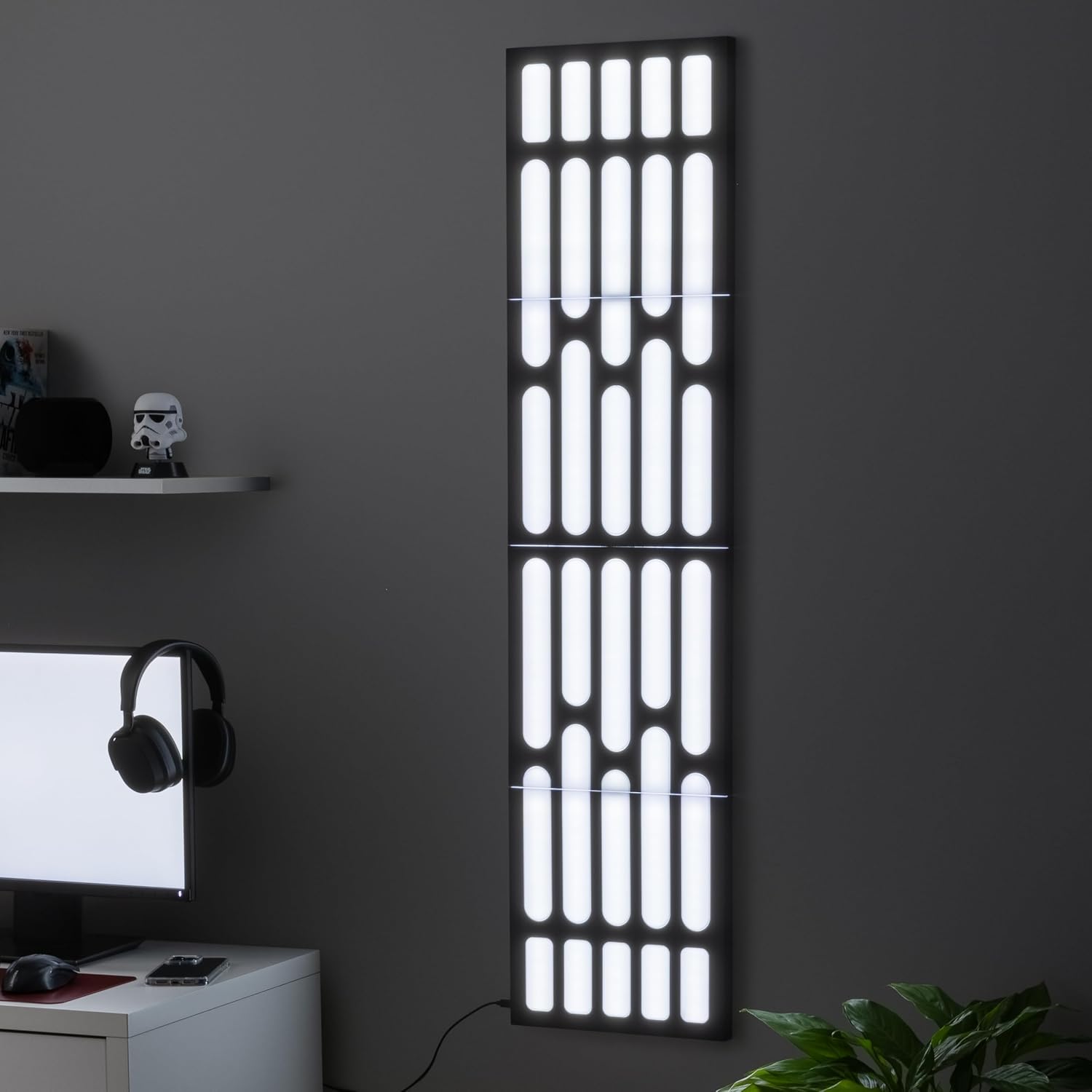 Recreate the Death Star at Home: Bring the Galactic Empire into your home with this dramatic 124cm tall Death Star inspired wall panel light - an eye-catching replica inspired by the Star Wars universe.