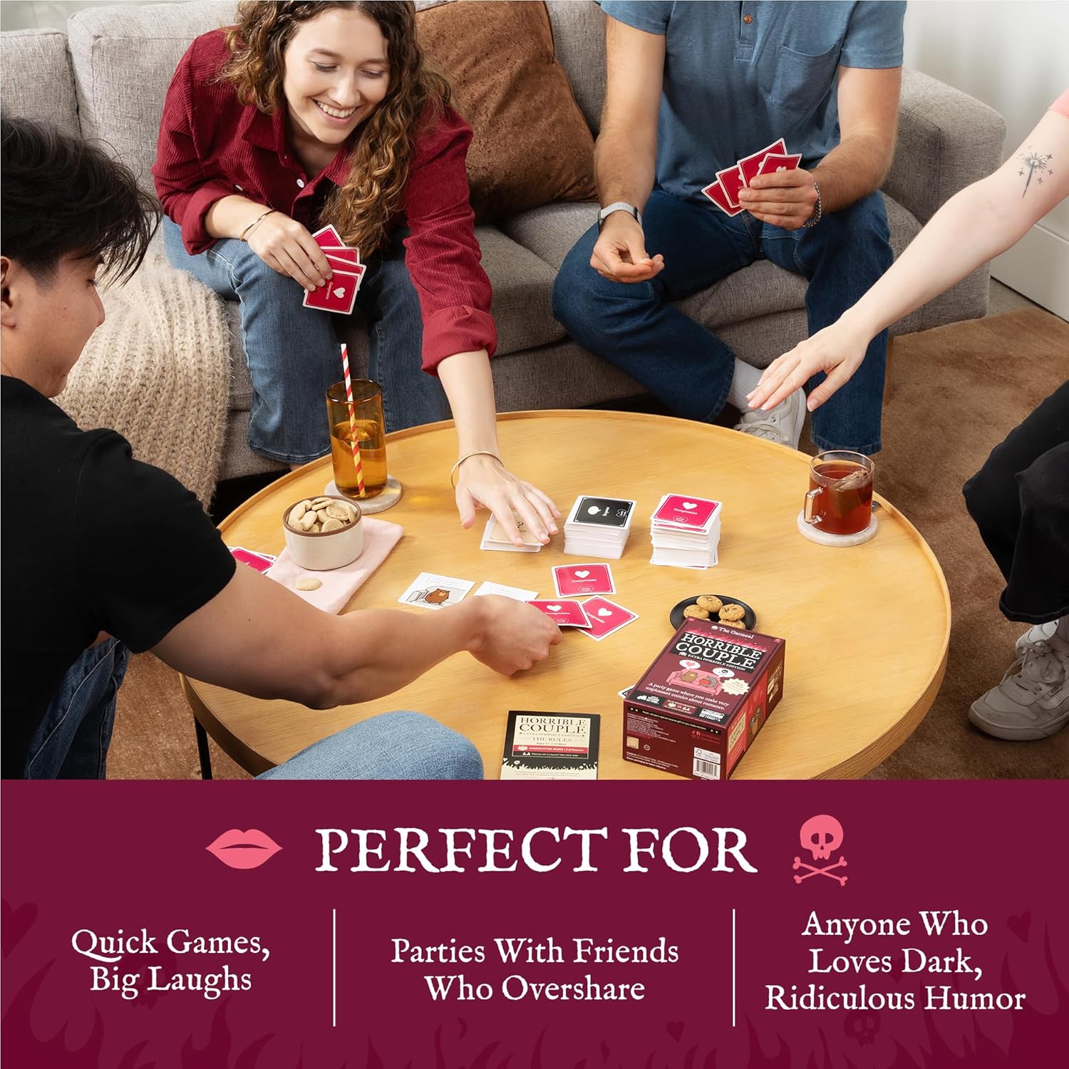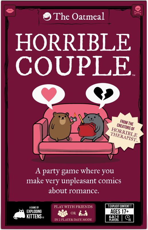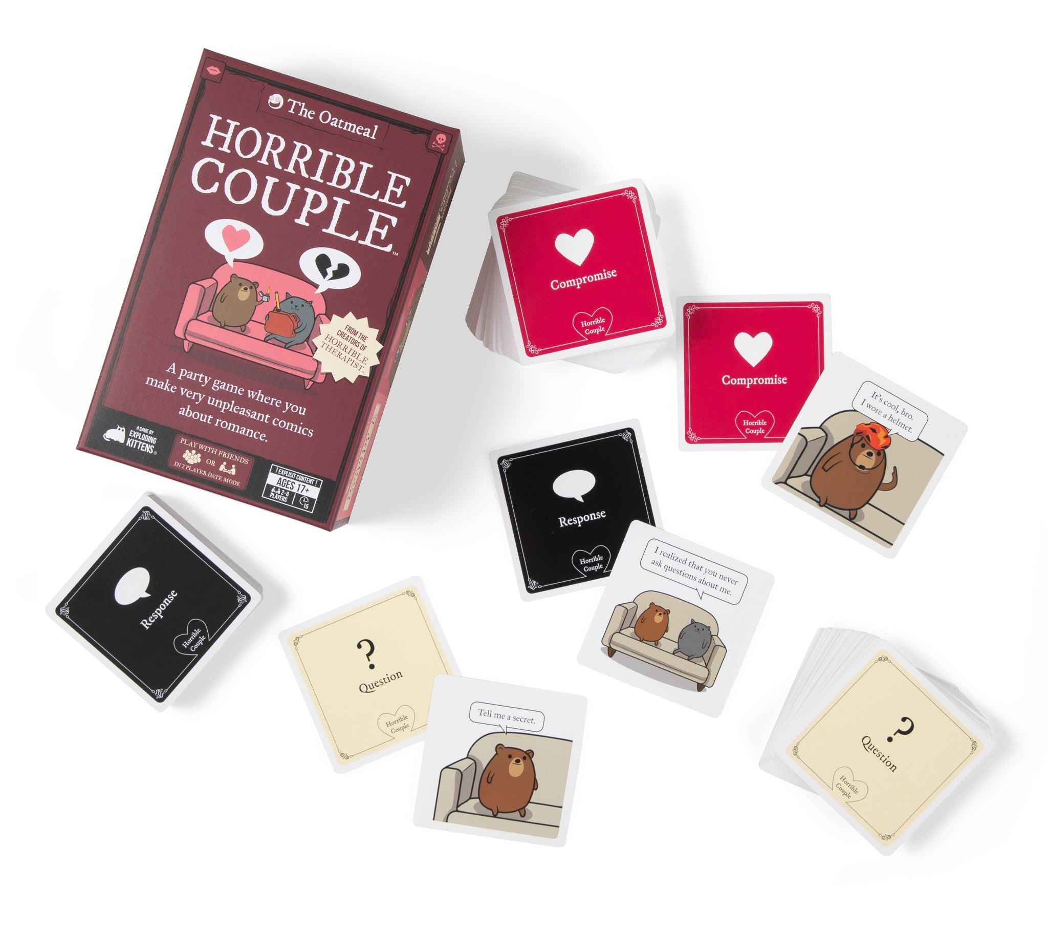 With 2 - 8 players recommended you can invite other friends or couples to make their own horrible comics. Fast, easy, and endlessly replayable, Horrible Couple is the marquee comic strip like card game that can be enjoyed or gifted to anyone with a dark sense of humor.