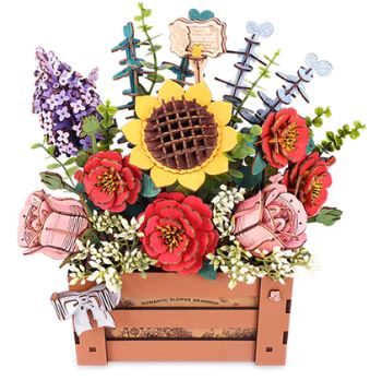 This exquisite 3D wooden puzzle features a stunning bouquet of laser-cut flowers, including roses, camellias, sunflowers, lilacs, and delicate fillers. Each flower is meticulously crafted with intricate details, showcasing the natural beauty of the petals, leaves, and stems. The puzzle pieces fit together seamlessly, creating a breathtaking, lifelike floral arrangement that blooms in three-dimensional form. Whether displayed as a work of art or carefully assembled as a tactile challenge, this puzzle offers a rewarding and decorative experience for puzzle lovers and nature enthusiasts alike. Crafted from high-quality wood, it is a durable and charming addition to any collection.