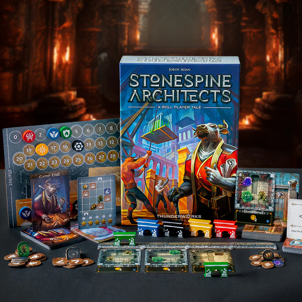Players simultaneously draft and play cards to expand their dungeons, one chamber at a time. Follow a unique blueprint and a variety of scoring challenges. Choose between mapping a path through your underground tunnels, placing key elements in your rooms, or searching for extra riches.