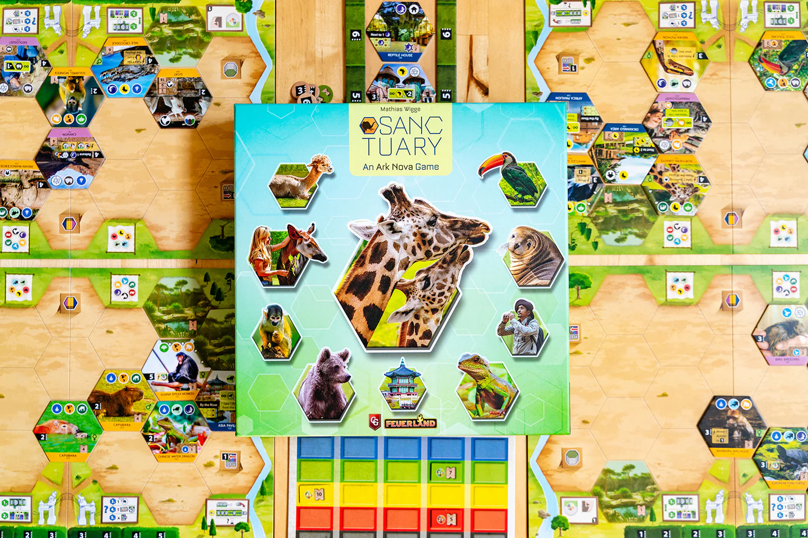 Sanctuary is based on its predecessor Ark Nova, but modifies and simplifies many of the mechanisms of that game in an elegant and surprising manner. Your goal to find the best way to puzzle together your animals, buildings, and projects on your zoo map is an ongoing pleasure!