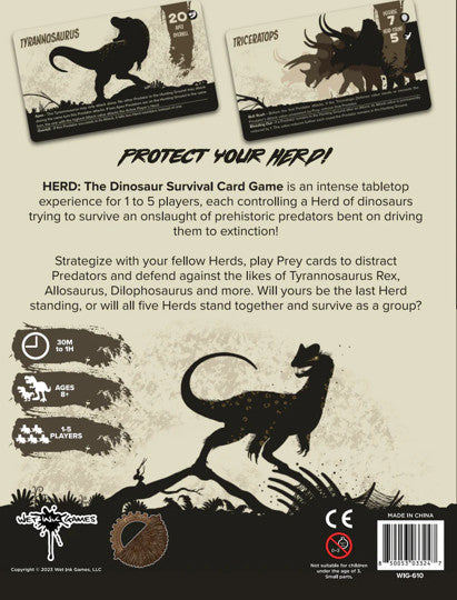 HERD: A Dinosaur Survival Card Game is a beautifully illustrated semi-cooperative card game with the goal of keeping your herd safe from rapacious predators during the Mesozoic Era.
