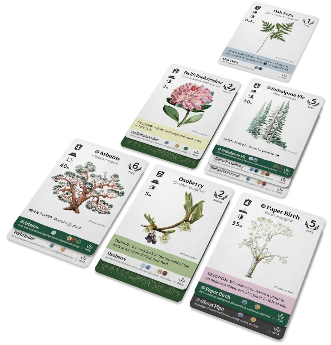 Reforest: Old Growth expands the original game with a new set of plants and animal visitors along with old growth trees, parasitic plants and terrain modules to alter the game. It can be combined with Reforest: Plants of the Pacific Northwest Coast or played as a standalone game.
