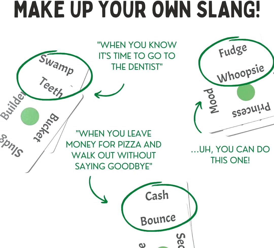 Create Your Own Slang: Combine hundreds of silly words to create hilarious new terms and definitions that will leave everyone in stitches. Simple wordplay, endless laughs.