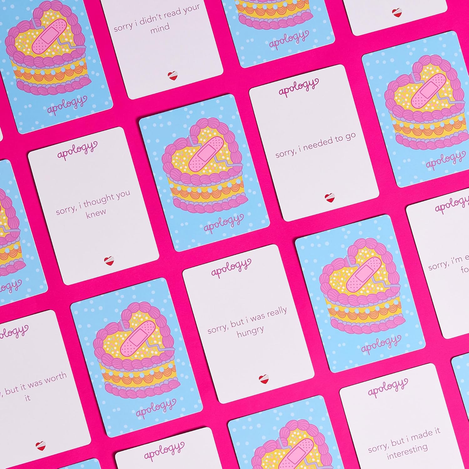 Every other player chooses an apology from their hand to apologize with, reading it aloud to the Hurt Party.