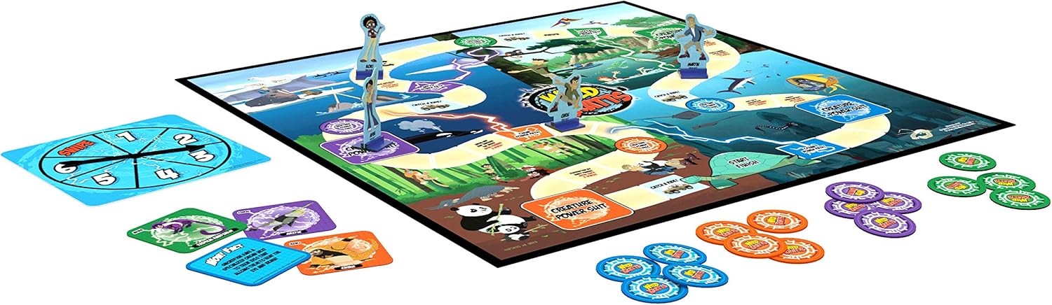 Players join the Kratt Brothers and the rest of the Wild Kratts team on animal adventures with this second edition of “Wild Kratts Race Around the World” Board Game!