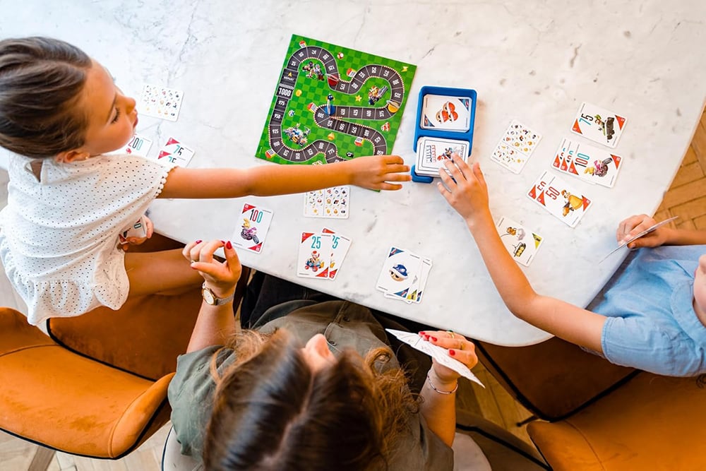 Play the famous game of 1000 km in the Mario Kart universe. Choose your favorite Mario Kart character, such as Mario, Luigi, or Peach, and play milestone cards to race around the track. But along the way, watch out for banana peels and your opponents' shells!