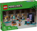 Minecraft® players aged 7 and up will love to get hands-on with the Minecraft weapons and features in The Armory (21252). This LEGO® Minecraft building kit is a great gift idea for kids, providing players with the perfect gateway to creative Minecraft adventures. This buildable gaming toy for kids includes 2 familiar figures: Minecraft action hero Alex, with her shield and diamond sword, and the industrious Armorsmith. There are 3 environments to explore: the work area, with an anvil, furnace,grindstone and lava-filled cauldron; the armor display room, with its chest containing a golden axe, enchanted trident, netherite sword, shield and other Minecraft resources; and the Nether portal, with its swinging-door entrance to players’ next adventure.
