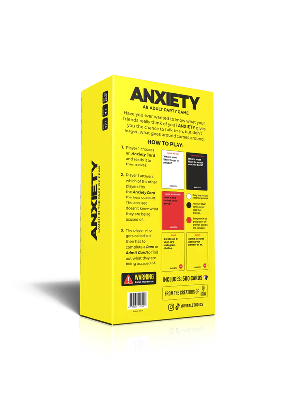 Have you ever wanted to know what your friends really think of you? Anxiety gives you the chance to talk trash about one another, but don’t forget, what goes around comes around. Step out of your realm of comfort and face hilarious accusations drawn by the group. Complete challenges in order to see what other players think of you. Anxiety is the next best adult party game brought to you by Viral Studios and the creators of Do or Drink!