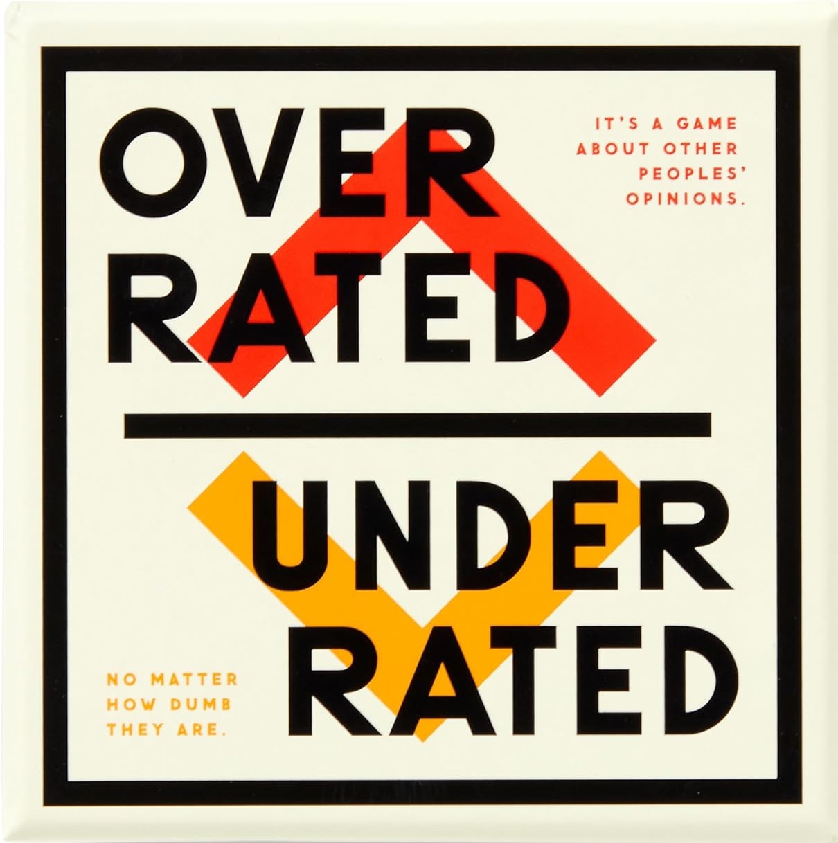 PERFECT PARTY GAME - Bring Overrated/Underrated to your next party and watch it be a guaranteed hit! It's like playing detective but with a twist of hilarious chaos. You really think your friends believe "hibachi grills" are overrated? Play the game and find out! It's a rollercoaster of unexpected topics and even more outrageous reactions. Get ready to debate the most mundane and the most insane of topics with the Overrated/Underrated game from Brass Monkey.